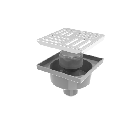 Точковий душовий трап з решіткою із нержавіючої сталі 150х150 мм, з вертикальним випуском DN50, з гідрозатвором